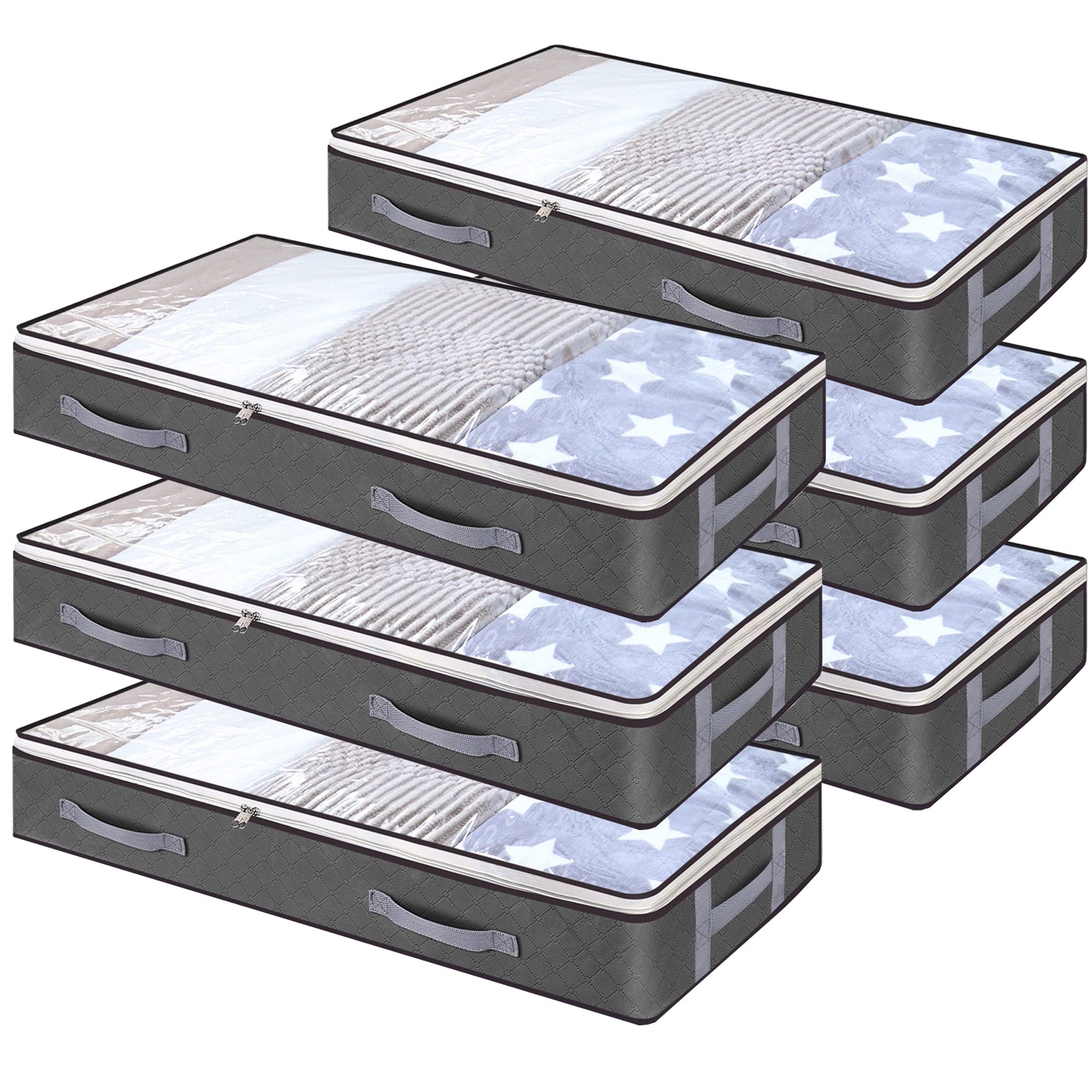 6 Pack Under bed Storage Bag with H Reinforced Handles,75L Visible Underbed Storage,Breathable Non-woven Closet Storage for Blanket