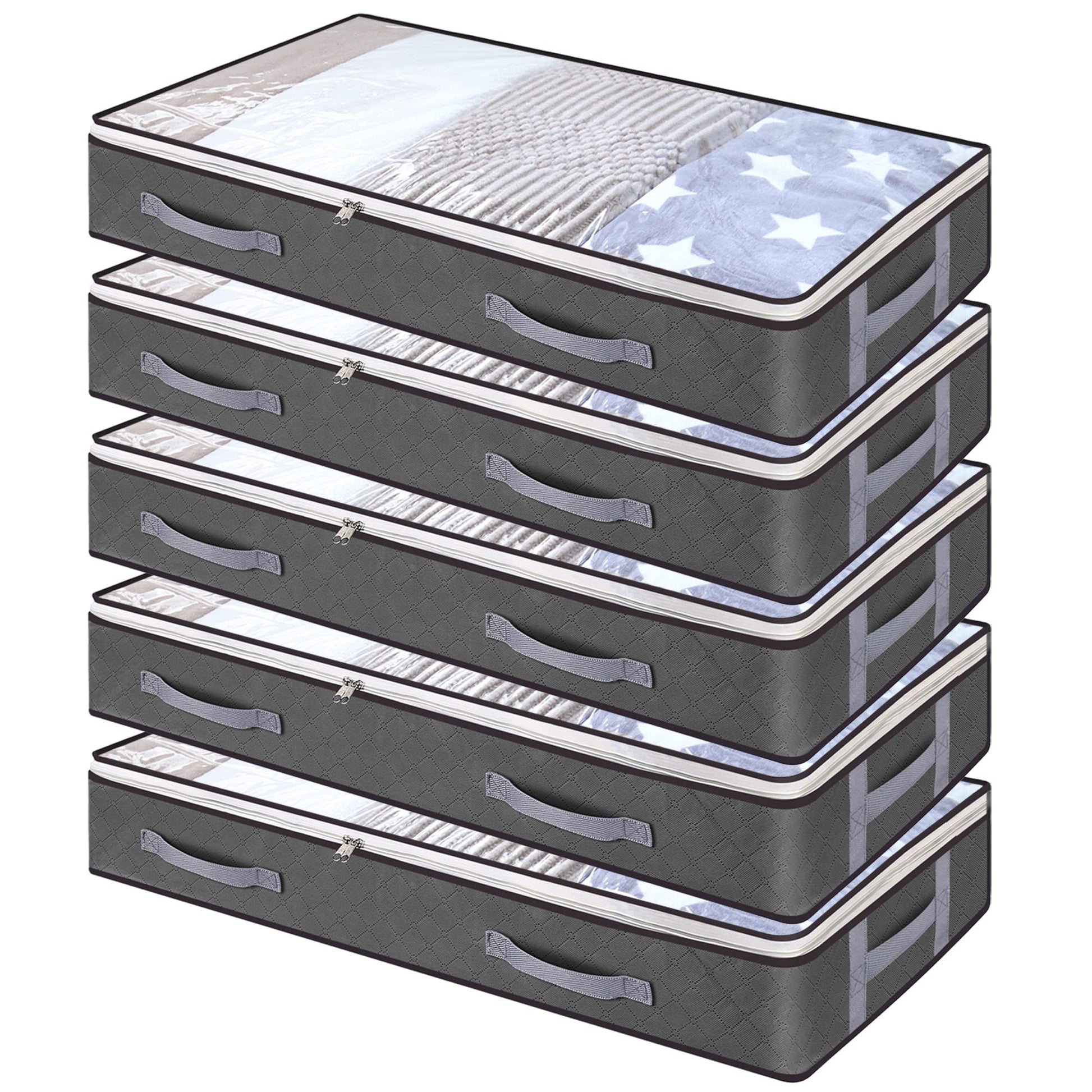 5 Pack Under bed Storage Bag with H Reinforced Handles,90L Visible Underbed Storage,Breathable Non-woven Closet Storage for Blanket,Pillows and Quilts