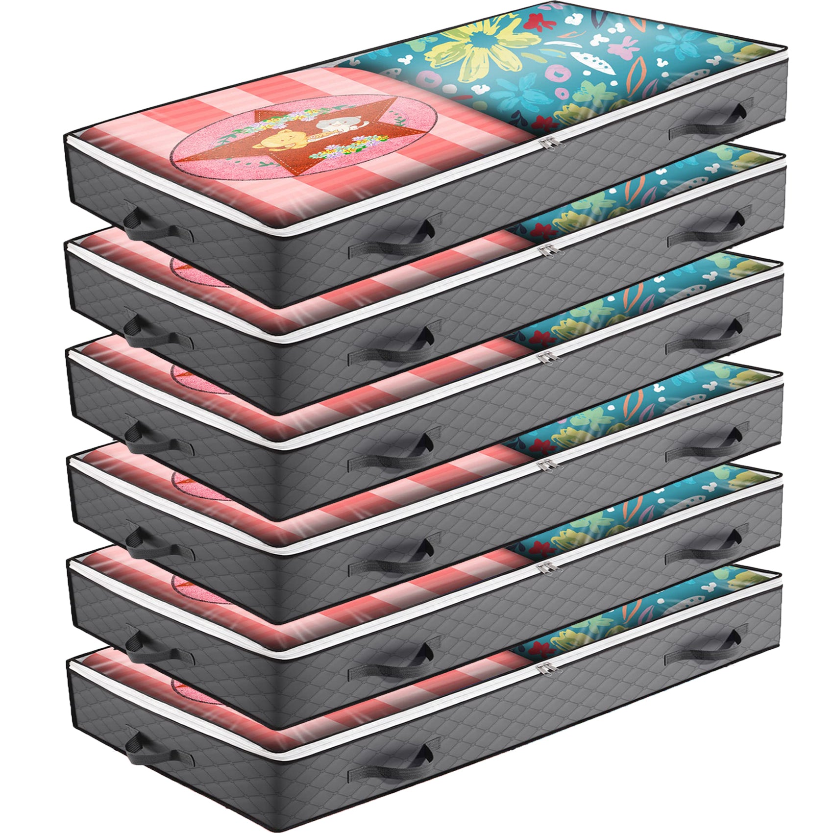 6 Pack Under Bed Storage Bags with Reinforced Handles,75L Visible Underbed Storage,Breathable Non-woven Closet Storage for Blanket
