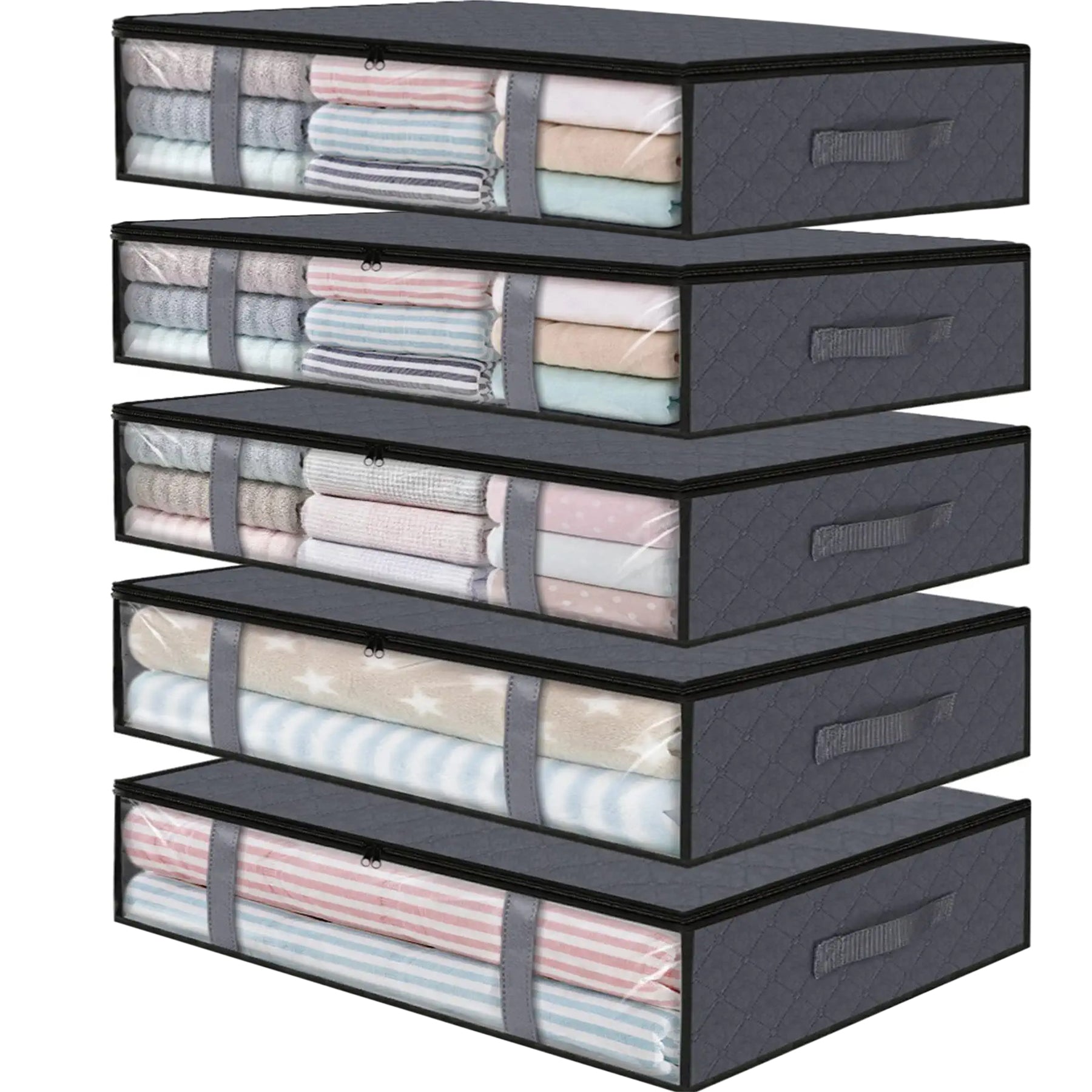 ACEUR 5 Pack Under Bed Storage Bags with Handles,45L Visible Underbed Storage with Zips,Foldable Breathable Non-woven Closet Storage for Blanket, Pillows, Comforters and Quilts