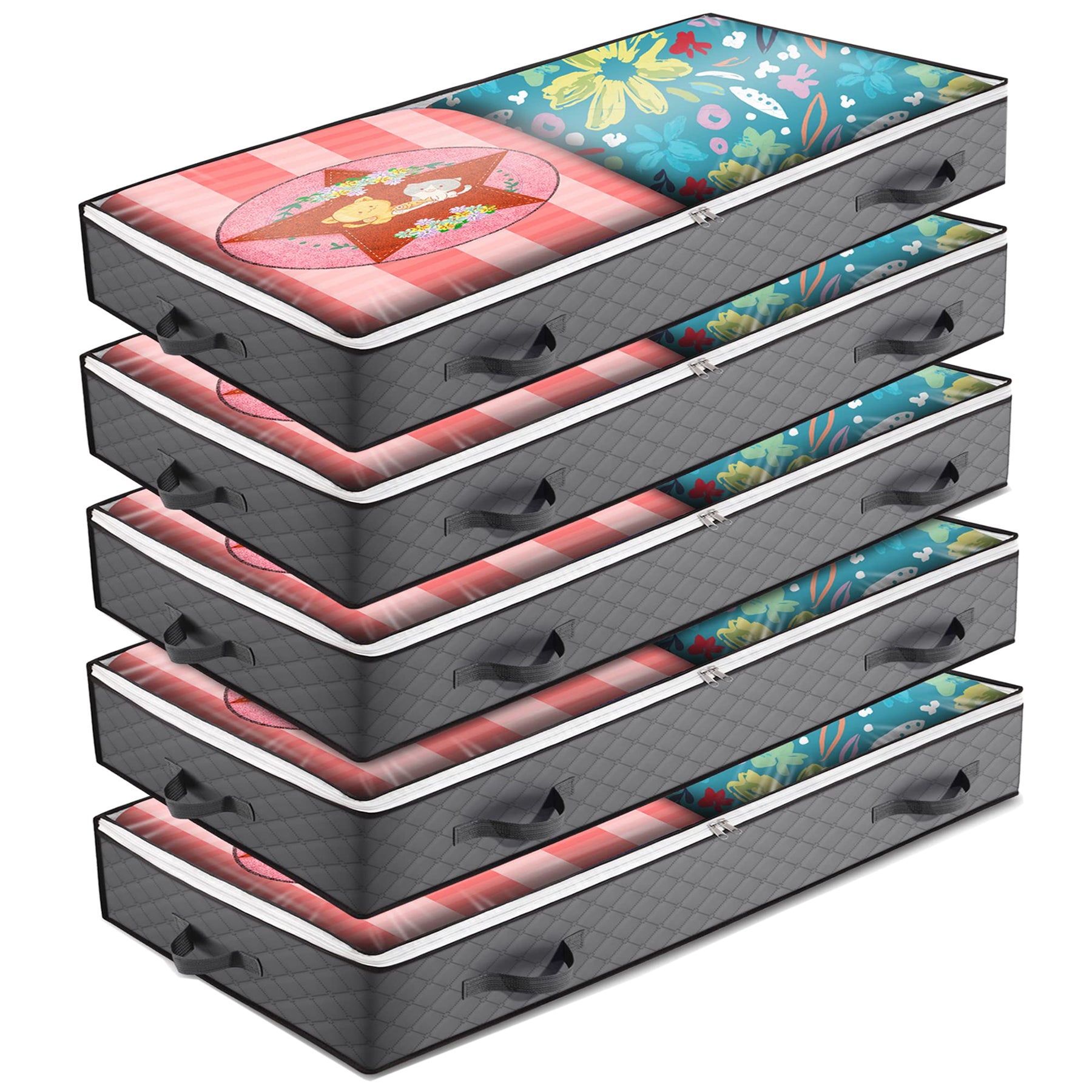 ACEUR 5 Pack Under Bed Storage Bags with Reinforced Handles,90L Visible Underbed Storage with Zips,Foldable Breathable Non-woven Closet Storage for Blanket,Pillows,Comforters and Quilts