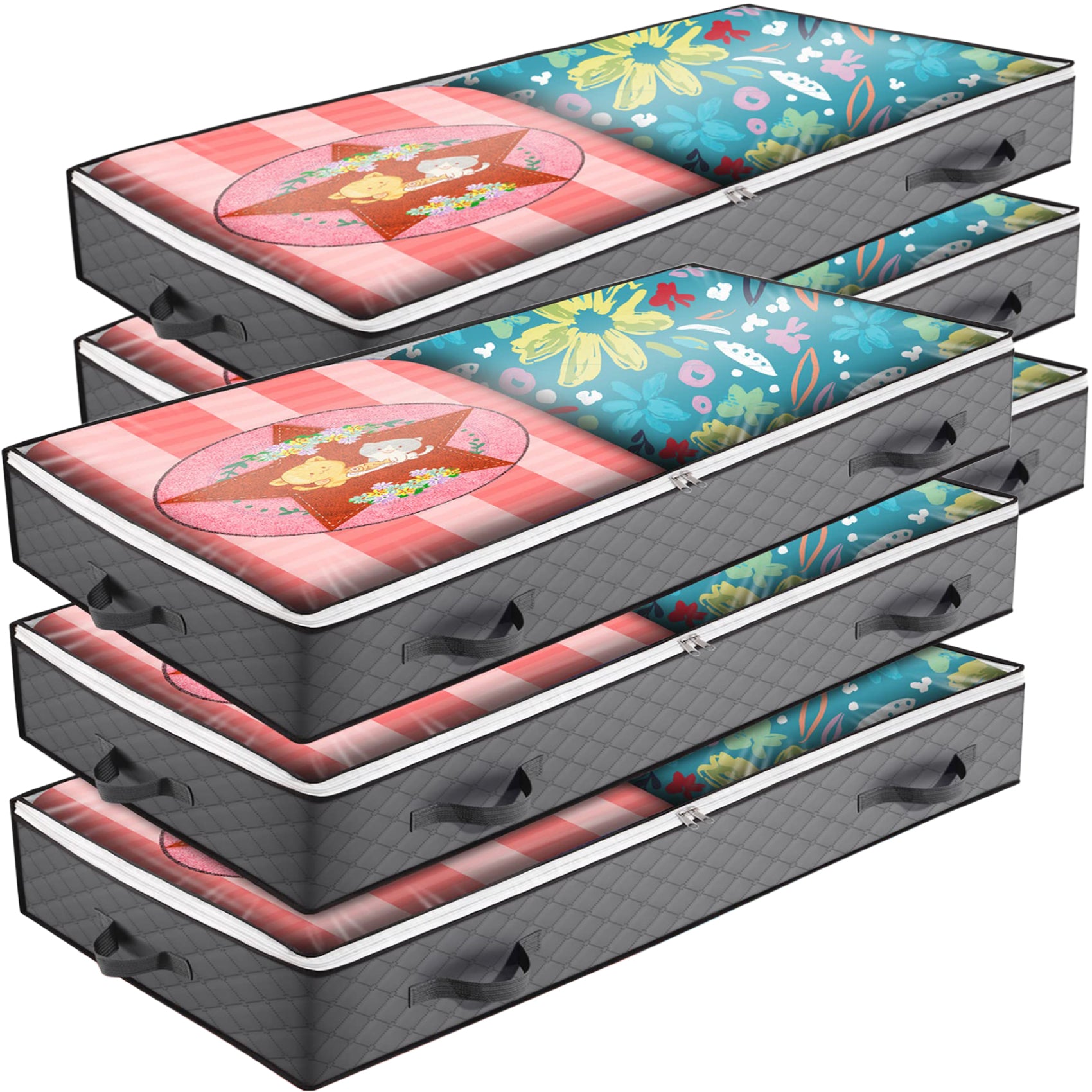 ACEUR 6 Pack Under Bed Storage Bags with Reinforced Handles,90L Visible Underbed Storage with Zips,Foldable Breathable Non-woven Closet Storage for Blanket,Pillows,Comforters and Quilts