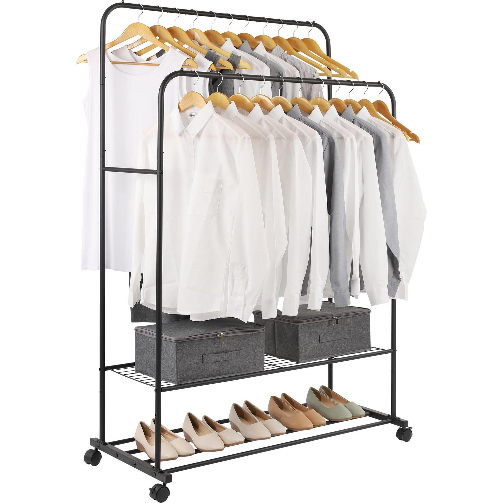 Clothes Rack with Wheels,Clothing Rack with Storage Shelf,Rolling Garment Rack for Hanging Clothes