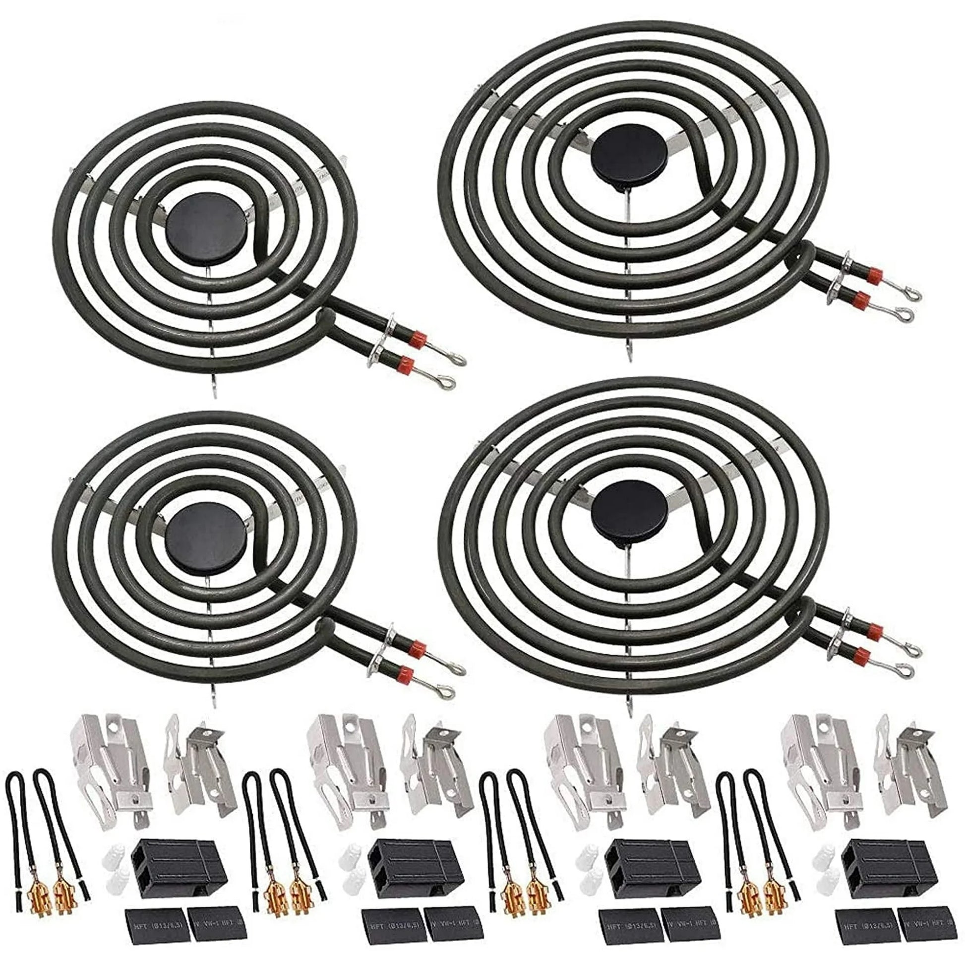 MP22YA Electric Range Burner Element Unit Set(2 pcs MP15YA 6" & 2 pcs MP21YA 8") with 4 Pack 330031 Surface Element Receptacle Kit by Beaquicy - Replacement for Whirlpool Ken-more